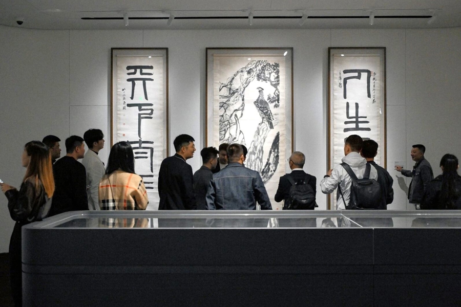 本次开馆大展以“观乎人文”为主题,以三千年艺术脉络,生动呈现了文明的传承与时代的演进。通过“华夏之序”“东西之渡”“时代之容”三大平行展,展出百余件珍贵文物与艺术品。其中,有享誉中外的重磅藏品,如商代甲骨刻辞三十四例,是现今中国最早的具有完备体系的文字载体,兼具极高的学术价值与文物价值;西周宣王五年青铜兮甲盘,内底133字铭文,是研究西周晚期民族关系、商业贸易的重要材料,曾拍出2.1275亿元成交价。